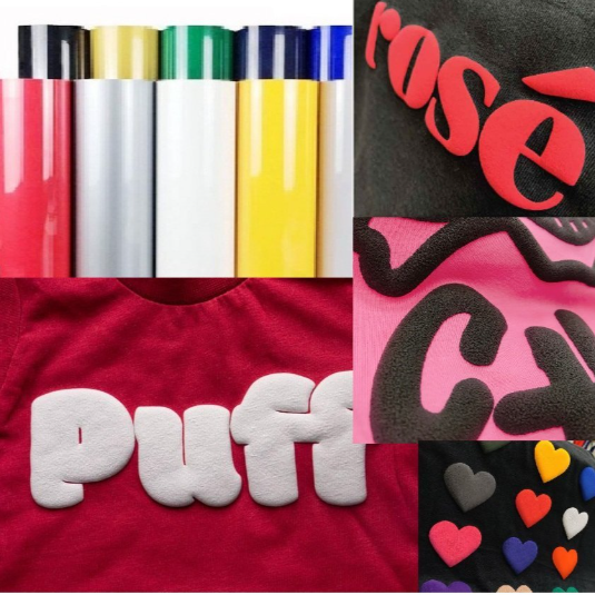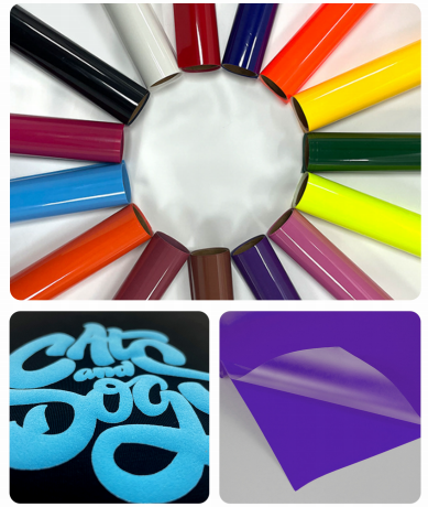 This puff heat transfer vinyl forms a soft 3D foamed effect after transfer, with excellent elasticity and wash resistance. It supports multiple cutting methods and warm peeling for easy operation. Suitable for cotton, polyester and blended fabrics, it is widely used for logos, letters and stereoscopic decorative designs on clothing and accessories.